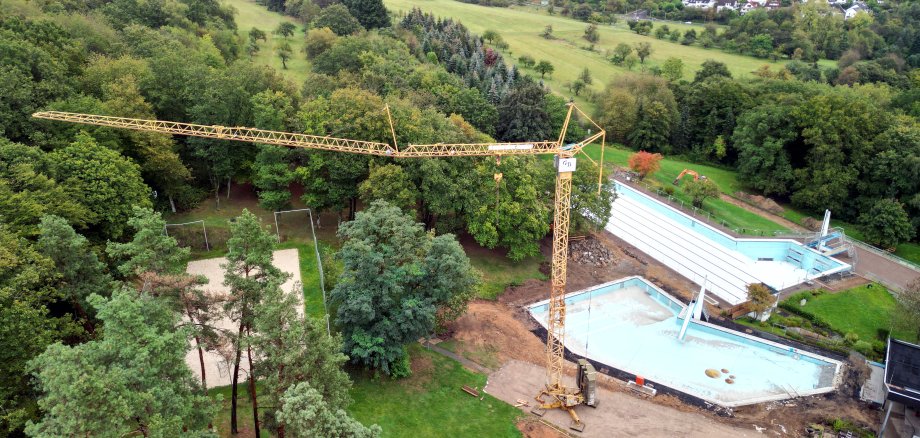 (Aus der Luft erkennt man den Umfang der Arbeiten rund um die Becken besonders gut. Foto: Jochen Haupt)